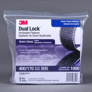 Discontinued A rubber based adhesive on the back of a black, polypropylene reclosable fastener. 400/170 stems per square inch. 0.23 inch engaged thickness. Closure life 1,000.