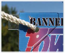 Banner Ups Crystal Clear PowerTabs® consists of a lamination of high strength engineered polymer film with a high performance, high tack acrylic pressure-sensitive adhesive .The tab is die cut to a unique shape designed to maximize tensile strength of the tab and the banner media to which it is attached. Ropes are fastened to end loop (for light duty applications) or through tab center holes (heavy duty applications). For the most demanding exterior conditions PowerTabs® may be used in conjunction with Banner Ups PowerTape® to create a banner of maximum strength.