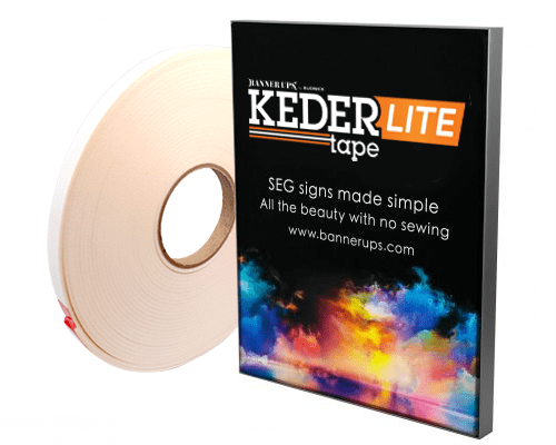 KederTape LITE is special because you don’t have to sew it into the fabric. The tape is coated with a unique adhesive that sticks to fabrics. No more barrier to entry for those who don’t have sewing capabilities. Jump into the profitable soft signage market today with KederTape LITE!