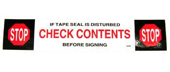 CARTBOPP 3218 is a 2.0 Mil (0.055mm, 30 microns) polypropylene film carton sealing tape features a water-based acrylic adhesive. Tape is imprinted in red and black on white backing "If Tape Seal is Disturbed Check Contents Before Signing." 3" Neutral core/carton.