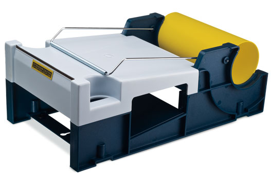Discontinued Plastic label protection dispenser for tape up to 6" wide. It has a maximum roll diameter of 6.5" and 3" core.