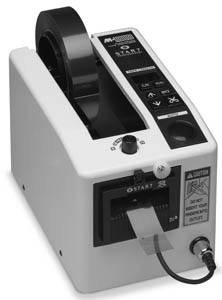 Discontinued DISPNSR 5113 is an electronic, definite length dispenser for PSA tapes up to 2" wide. it automatically advances and cuts tape with digital length adjustment. DISPNSR 5113 dispenses tape .28" to 2" wide and cuts tape lengths .79" to 39". It has an adjustable pressure feed to help prevent curling of tape and manual override of preset lengths. It has a photocell actuated feed mechanism and cutter or manual feed and cut. It holds rolls on 3" cores and is ideal for medium production facilities.